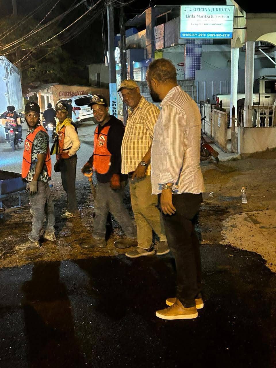 El alcalde Wilfredo Olivences continúa demostrando su compromiso con el bienestar de la ciudadanía, supervisando personalmente los trabajos de bacheo que se están realizando en distintos sectores del municipio de Sosúa, incluso en horarios nocturnos.