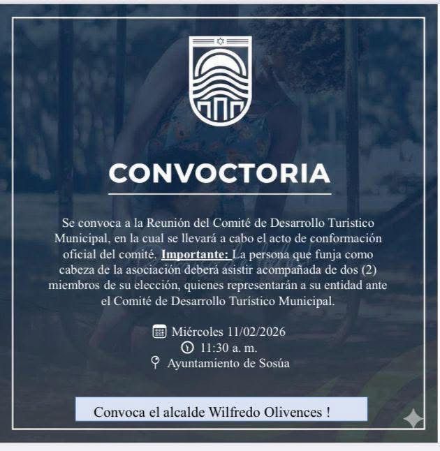 La presente convocatoria es realizada por el alcalde del municipio de Sosúa, señor Wilfredo Olivences.