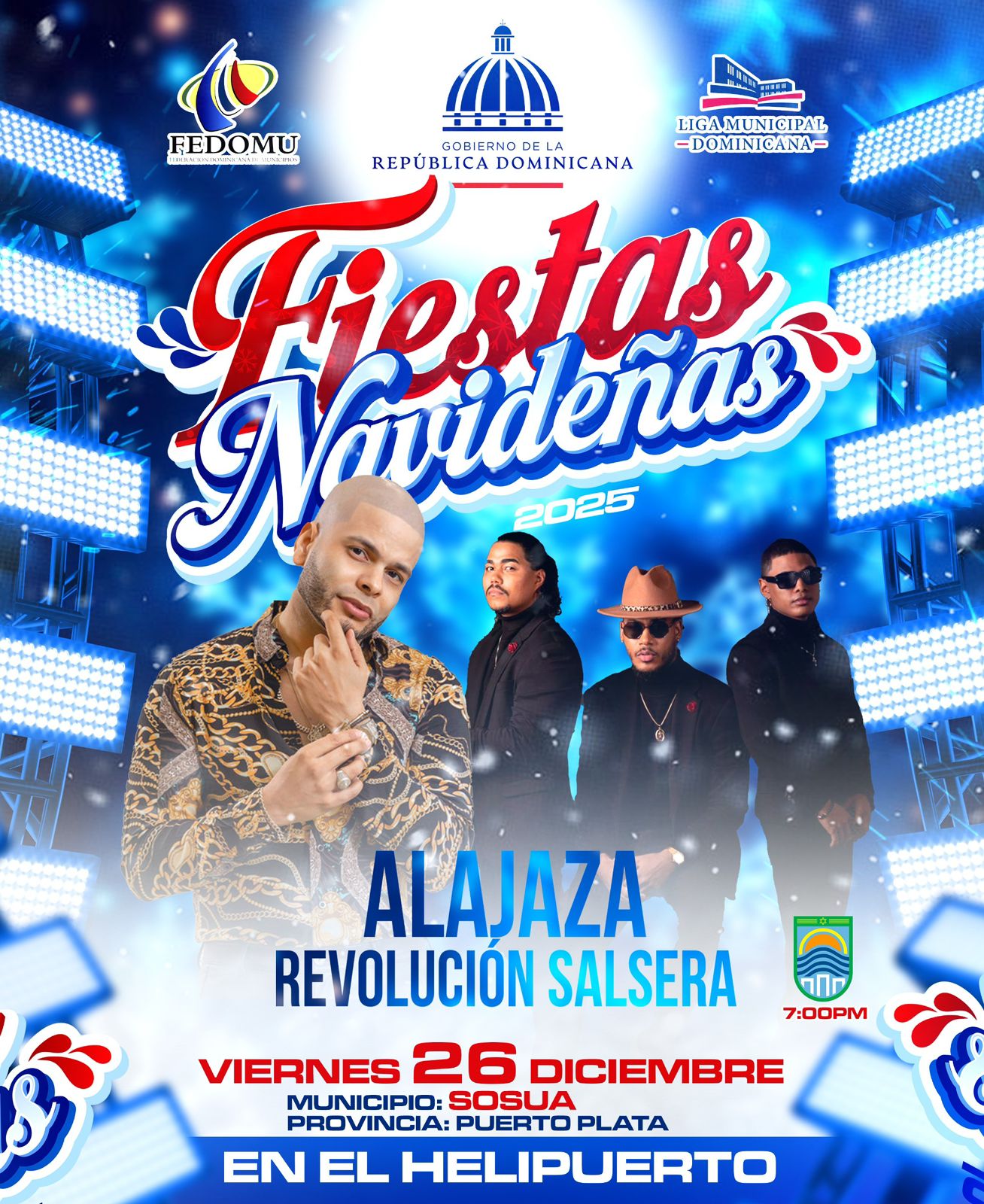 El Ayuntamiento de Sosúa tiene el honor de invitar a toda la ciudadanía a la Gran Fiesta de Alegría y Alabanza, que se celebrará este jueves 26 de diciembre, en el Helipuerto de Sosúa, a partir de las 7:00 de la noche.