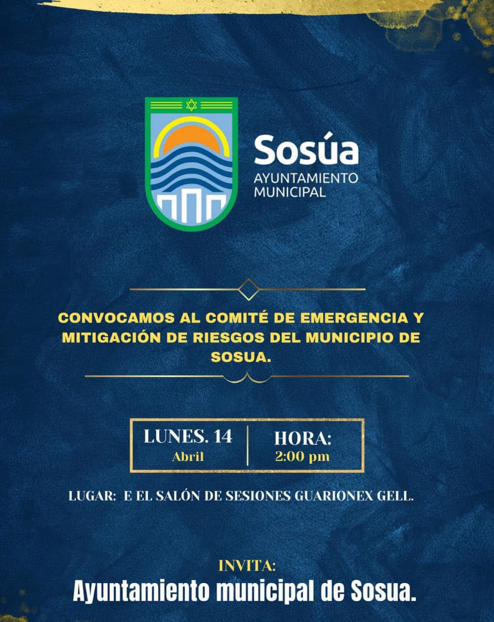 El Ayuntamiento Municipal de Sosúa tiene el honor de convocar al Comité de Emergencia y Mitigación de Riesgos del Municipio de Sosúa.
